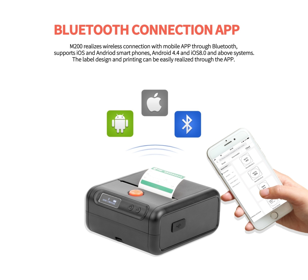 M200 Label Maker – 3 Inch 80mm Bluetooth Thermal Label Printer for Android & iOS System Apply to Labeling, Retail, Mailing, Clothing, Images, Cable, Barcode and More.